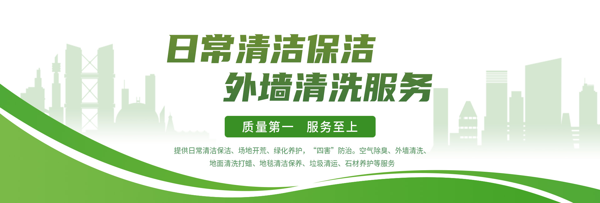 提供日常清潔保潔、場(chǎng)地開(kāi)荒、綠化養(yǎng)護(hù),“四害”防治??諝獬?、外墻清洗、 地面清洗打蠟、地毯清潔保養(yǎng)、垃圾清運(yùn)、石材養(yǎng)護(hù)等服務(wù)